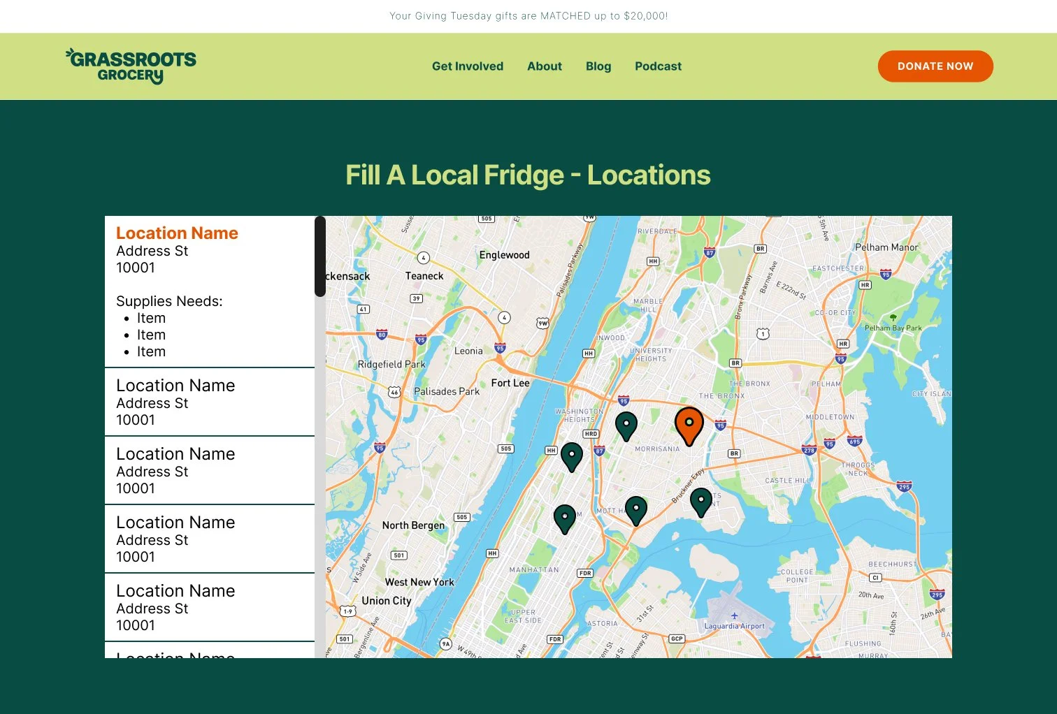 Grassroots Grocery is a non-profit organization dedicated to providing fresh groceries to families in low-income communities in New York City.