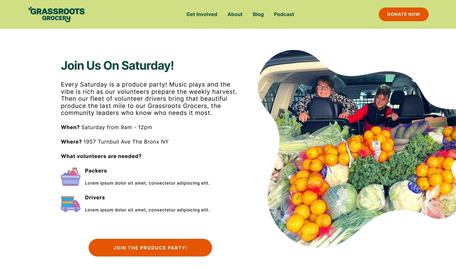 As such, Grassroots Grocery is looking to attract more volunteers through their website, as well as ensure that the website communicates their core values to visitors.
