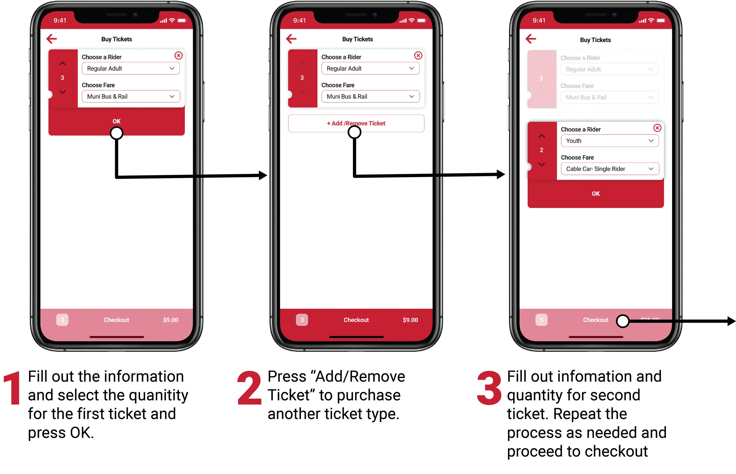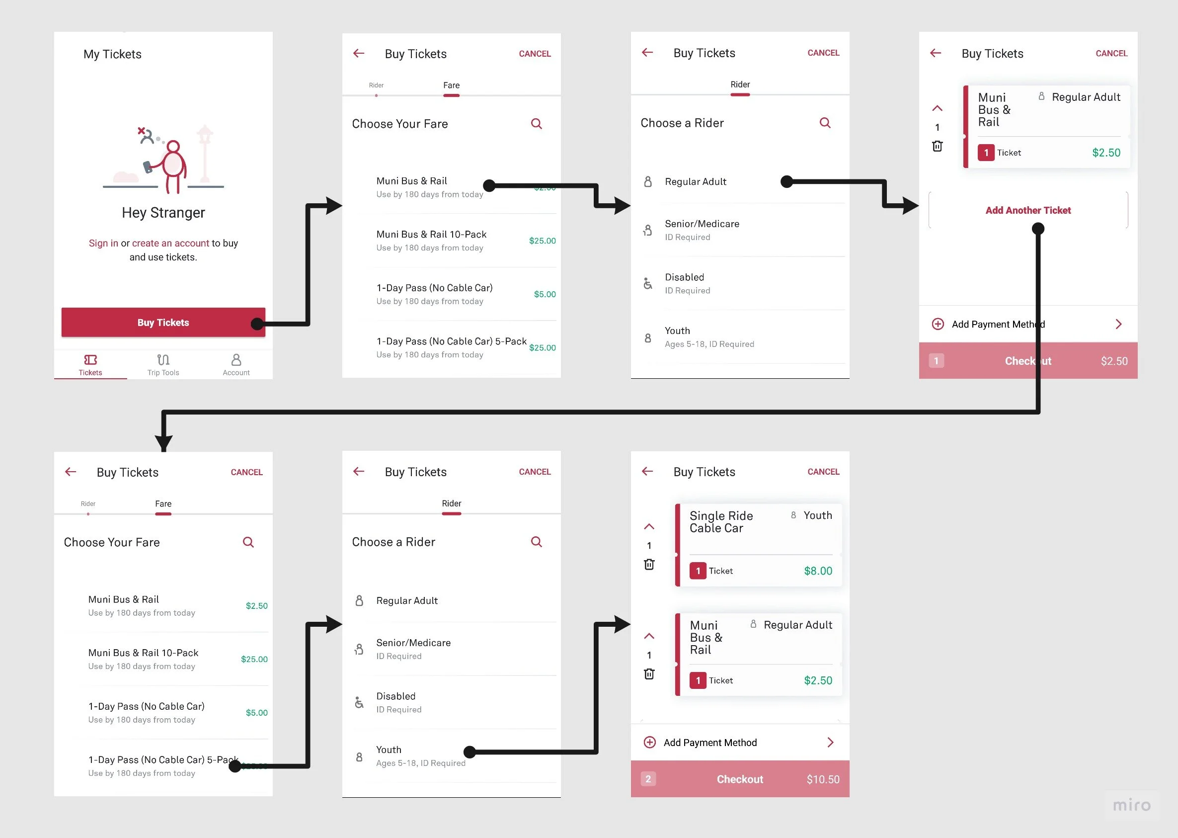 In order to buy two tickets for two separate rider (for example one adult & one youth), it was necessary for the user to move through seven separate screens.